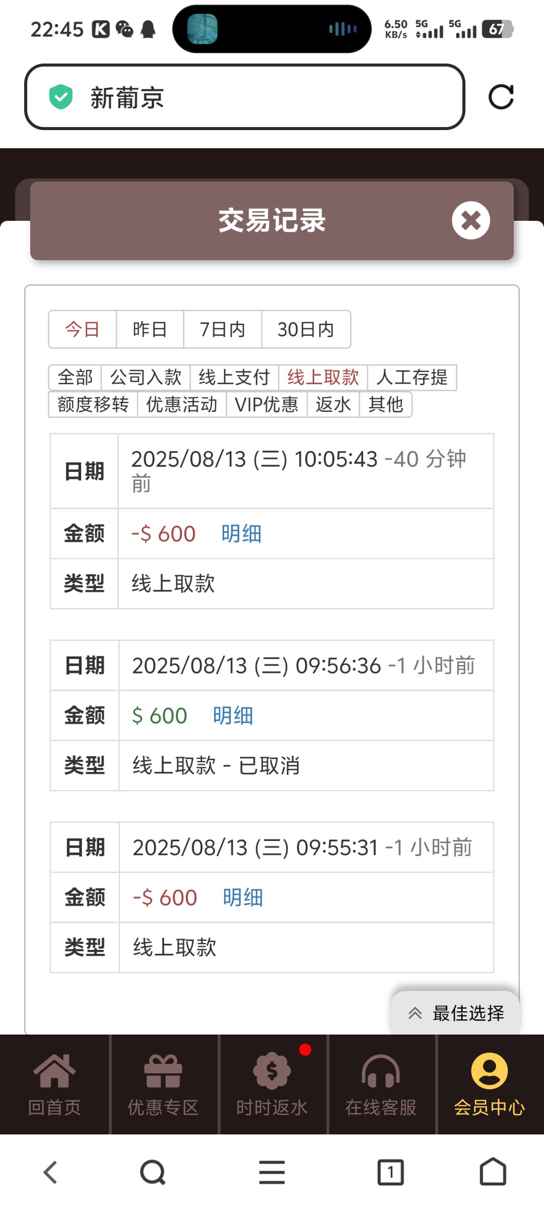 出款情况:自测(禁止充值)