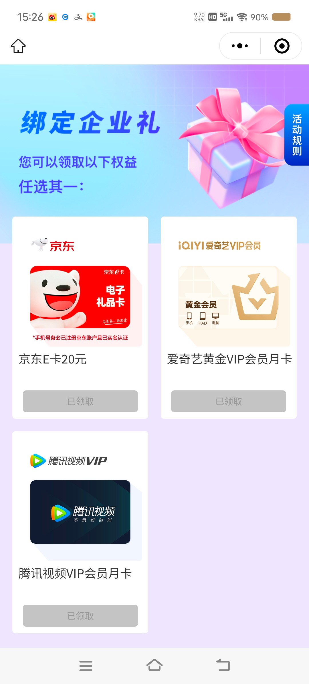 白嫖京东e卡腾讯会员,把之前的号注销重新去注册就可以再领一次,刷新了已经