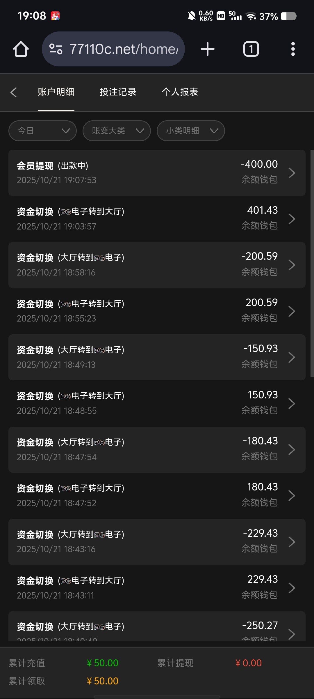 黑台,充50,只给了8块打到100提现直接冻结