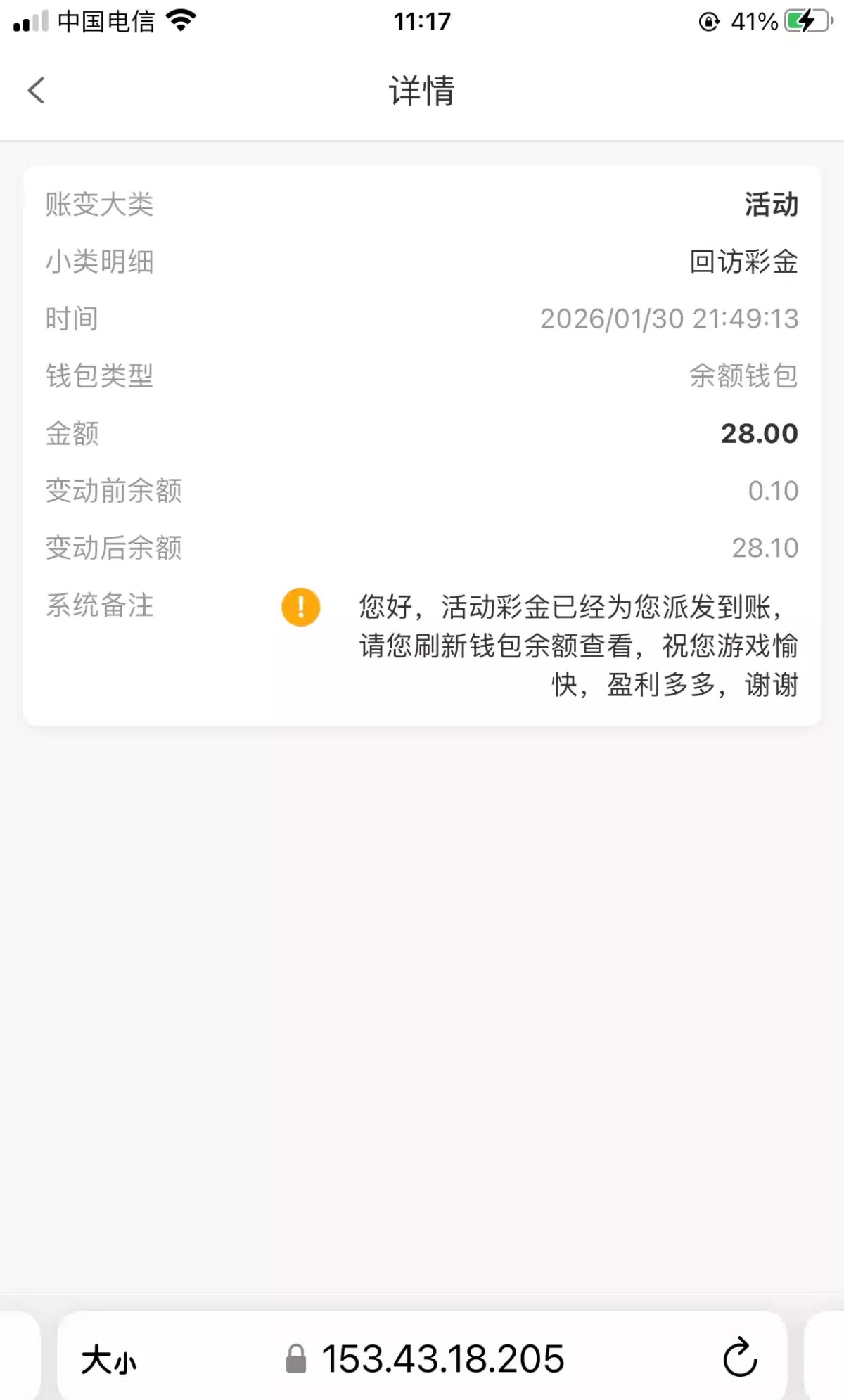 改版以后回访彩金和以前好像不一样了 以前是登录直接派送 现在接到电话得等客服帮你申请了以后彩金才给你派送 昨天我接到电话听了网址我就挂了 然后登录没有彩金 后面联系客服才给我派送的 所以如果没有电话可以联系客服申请电话彩金 防止电话被拦截或者漏接